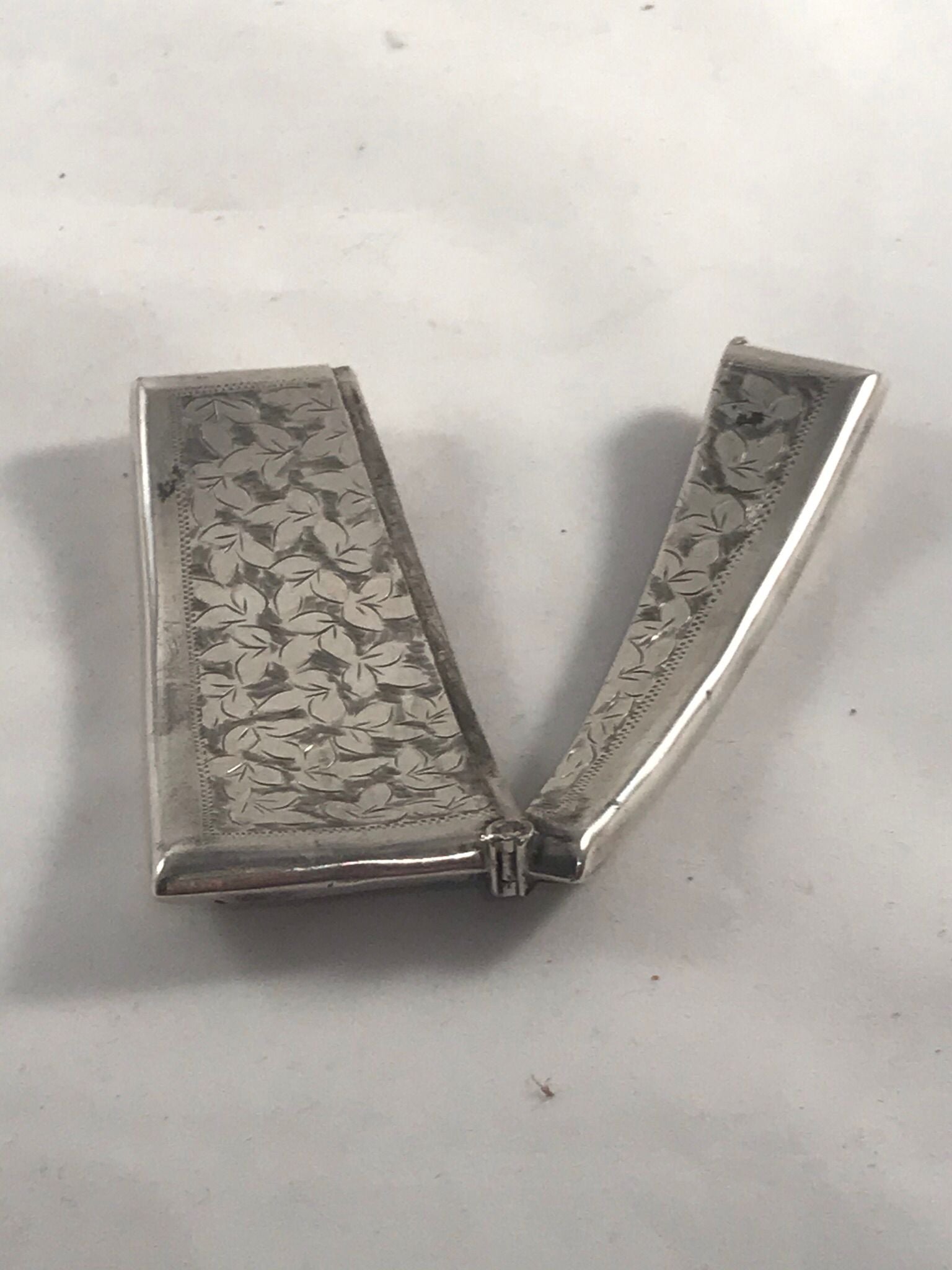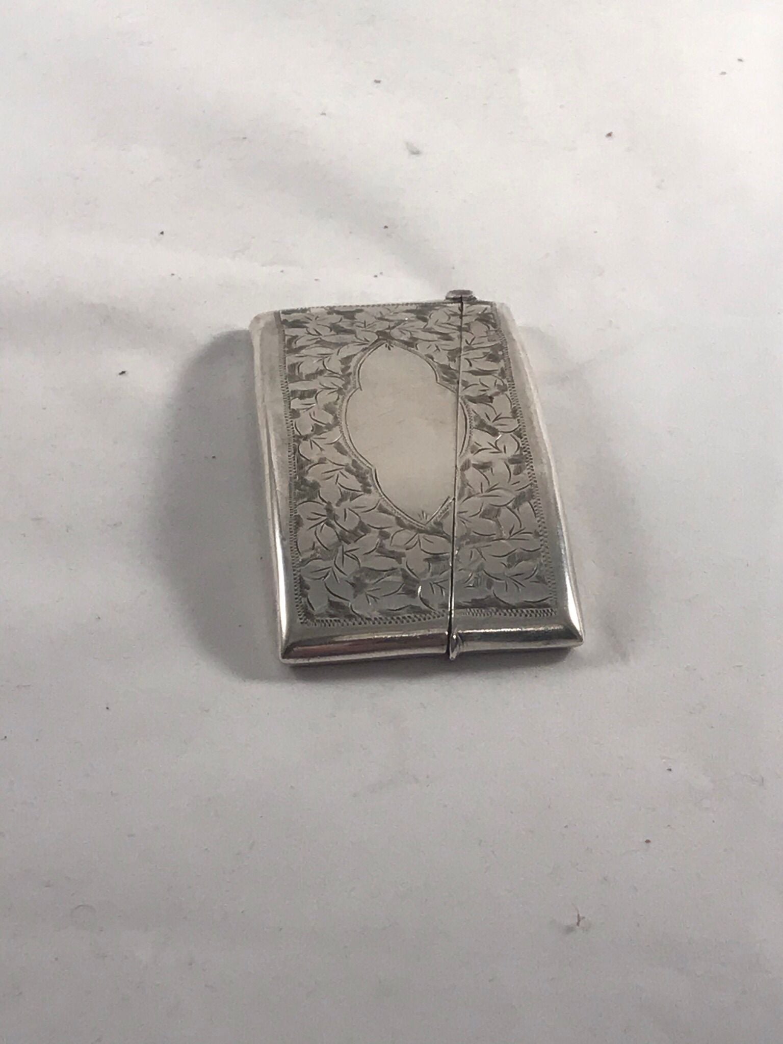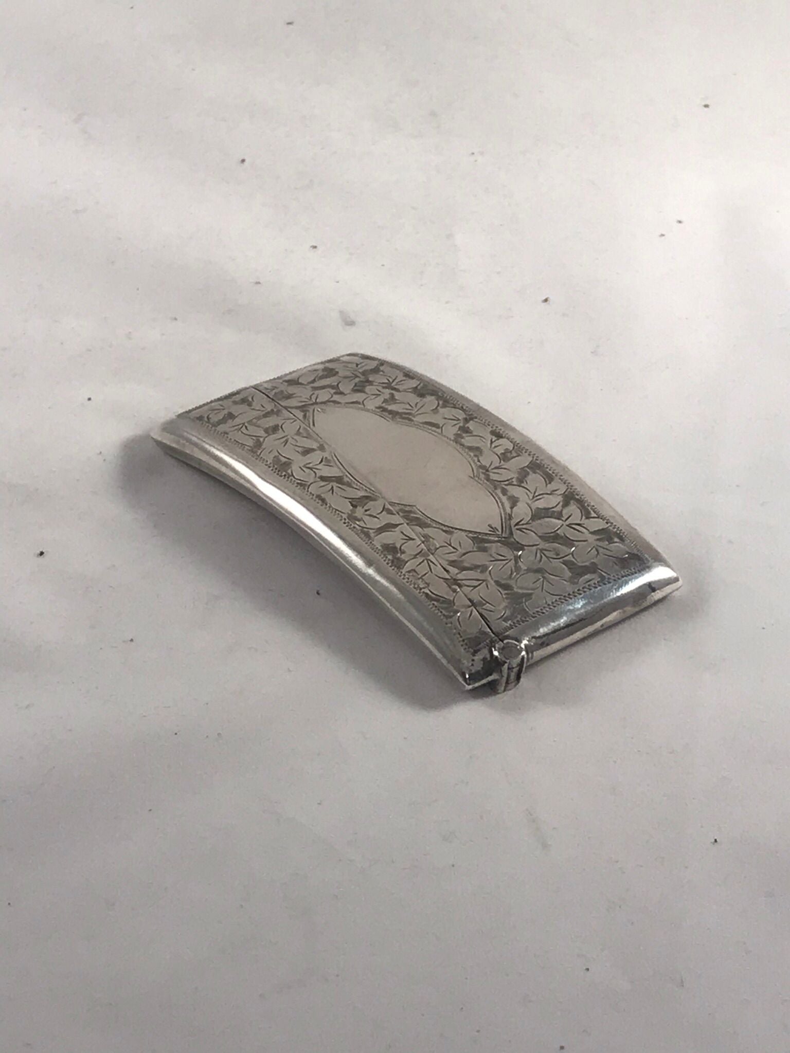 A really striking Edwardian silver curved card case. This has an all over Ivy leaf decoration which is really unusual and striking. It has a shaped cartouche to the front which is unengraved. A really beautiful example of an piece of collectable silver from the Edwardian period.