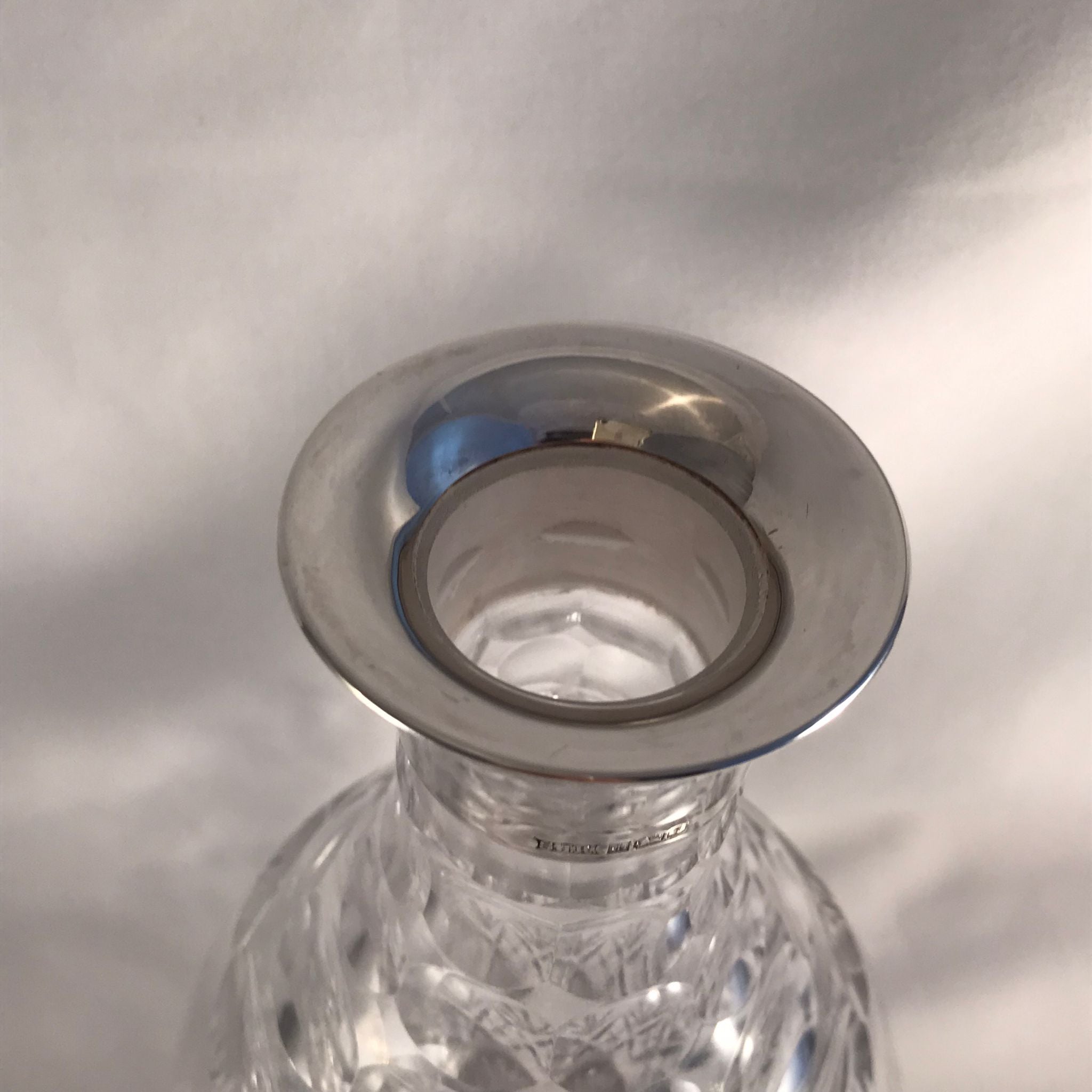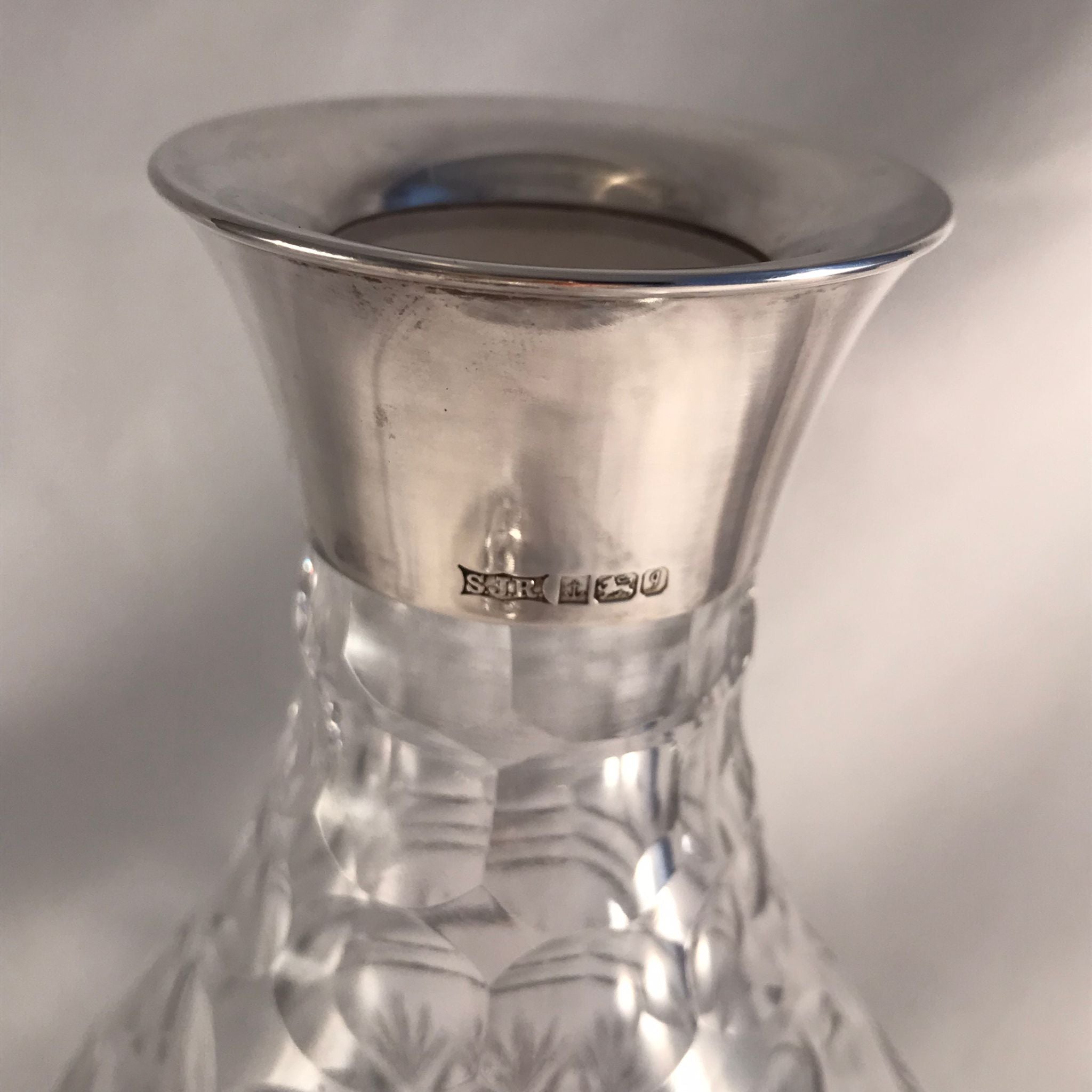 A Silver Collared Cut Glass decanter of typical ovoid form.  The cut glass is of very good quality.