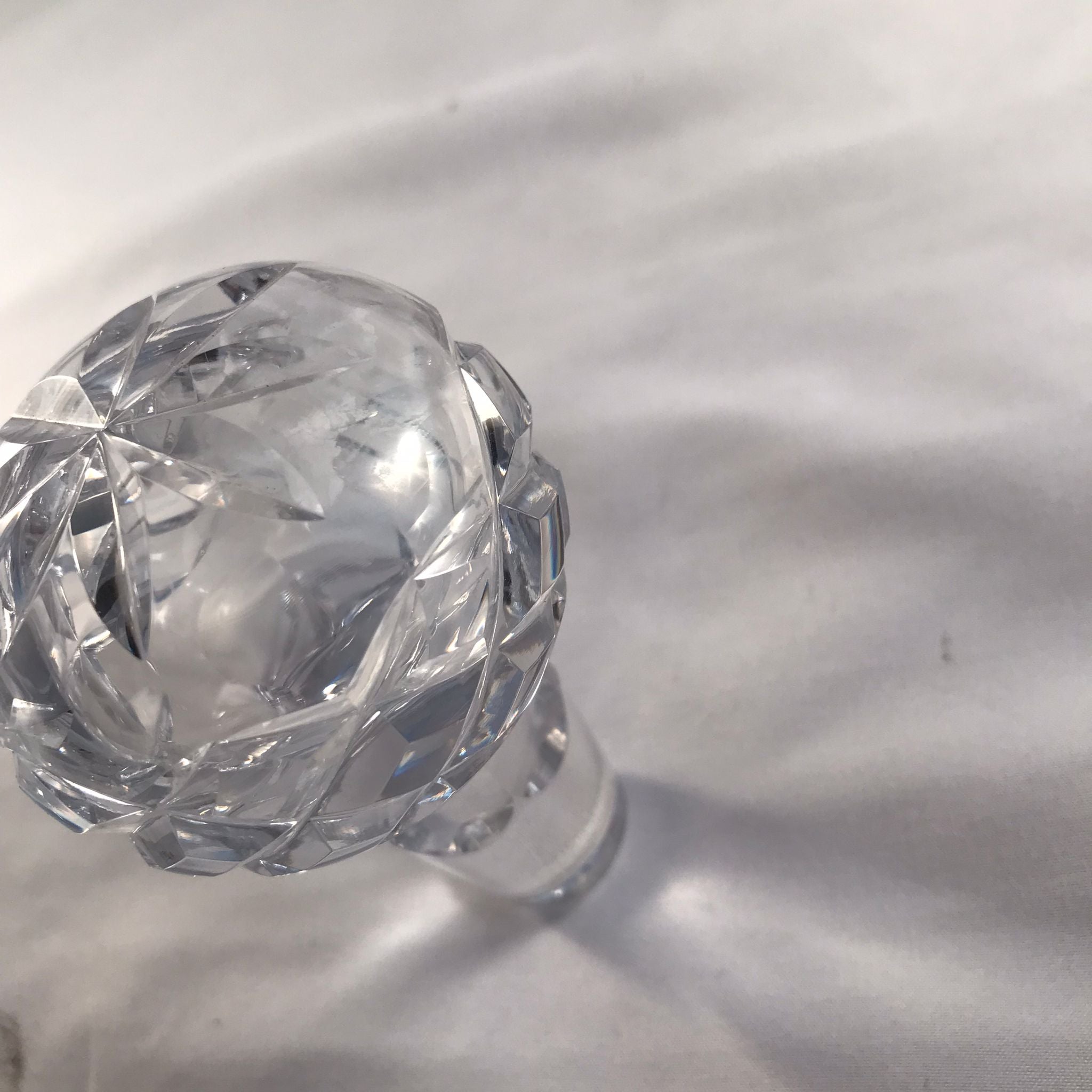 In very good condition with no damage to the glass or the silver.  The stopper is original but is a little cloudy in appearance.  There are minor remnants of dried liquid in the base - see close up pictures.  Hallmarks are clear.