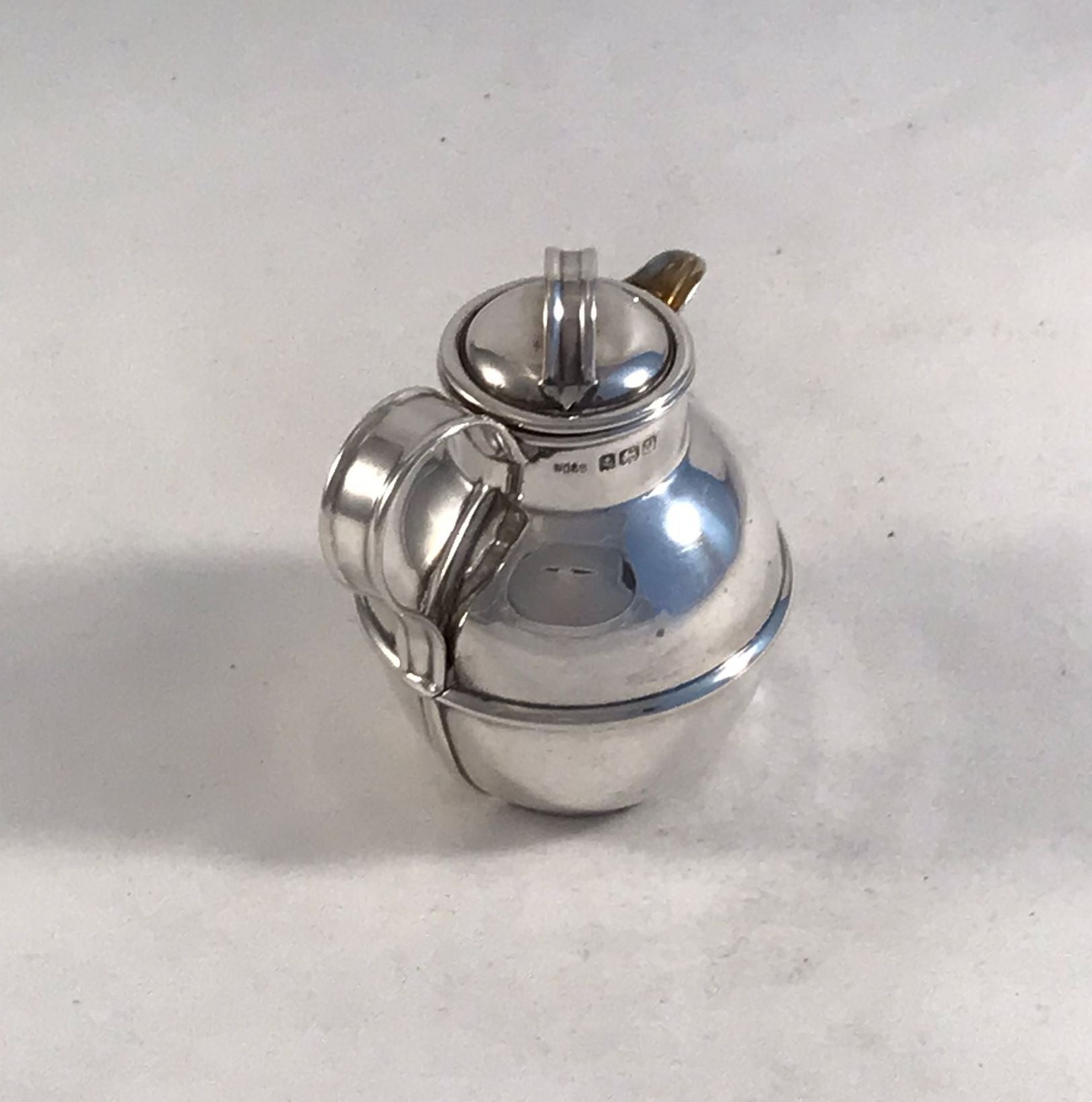An unusual silver jug designed as a Guernsey Milk Churn. This unusual silver jug is a highly collectable silver item from the 1920s.