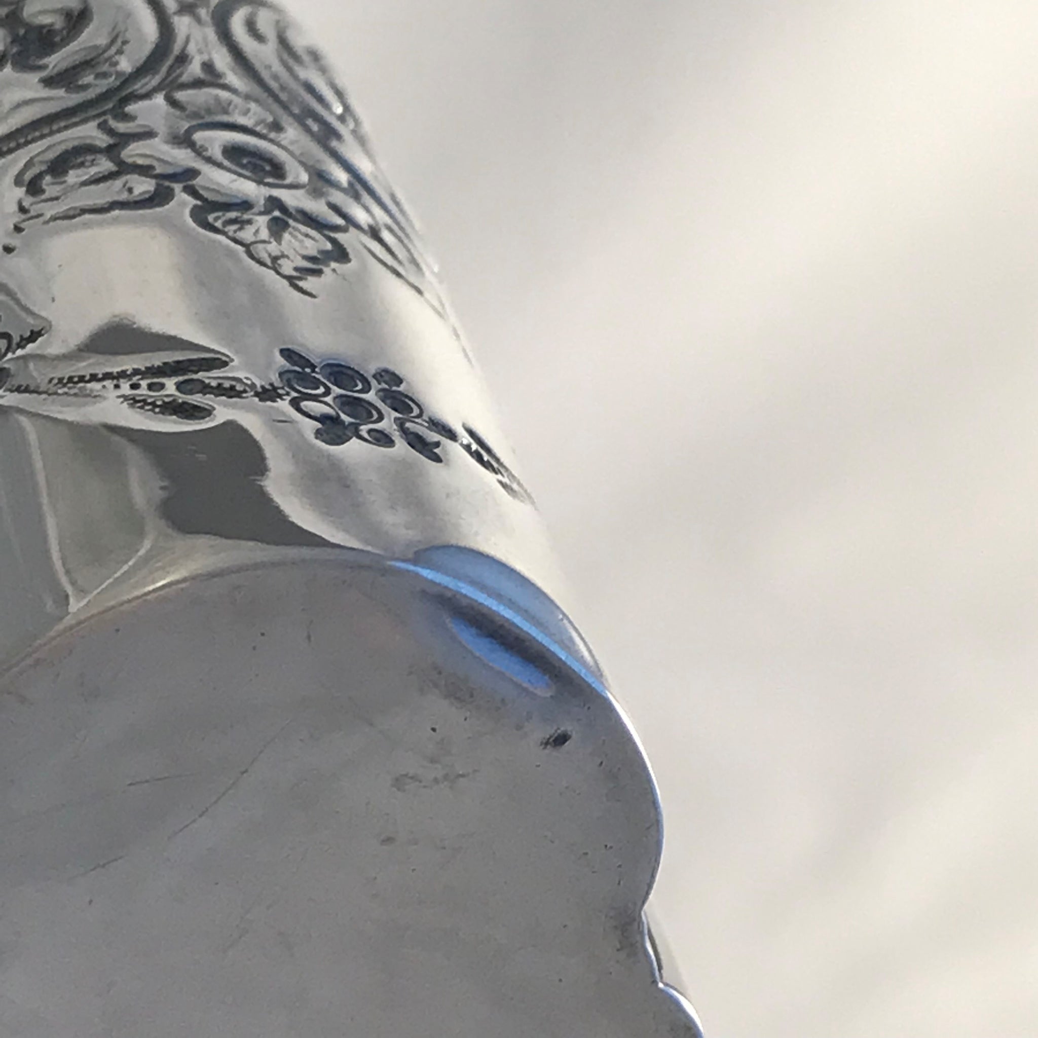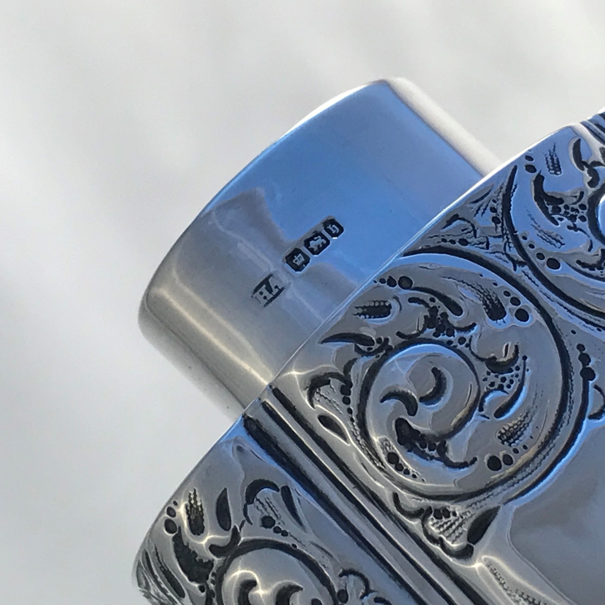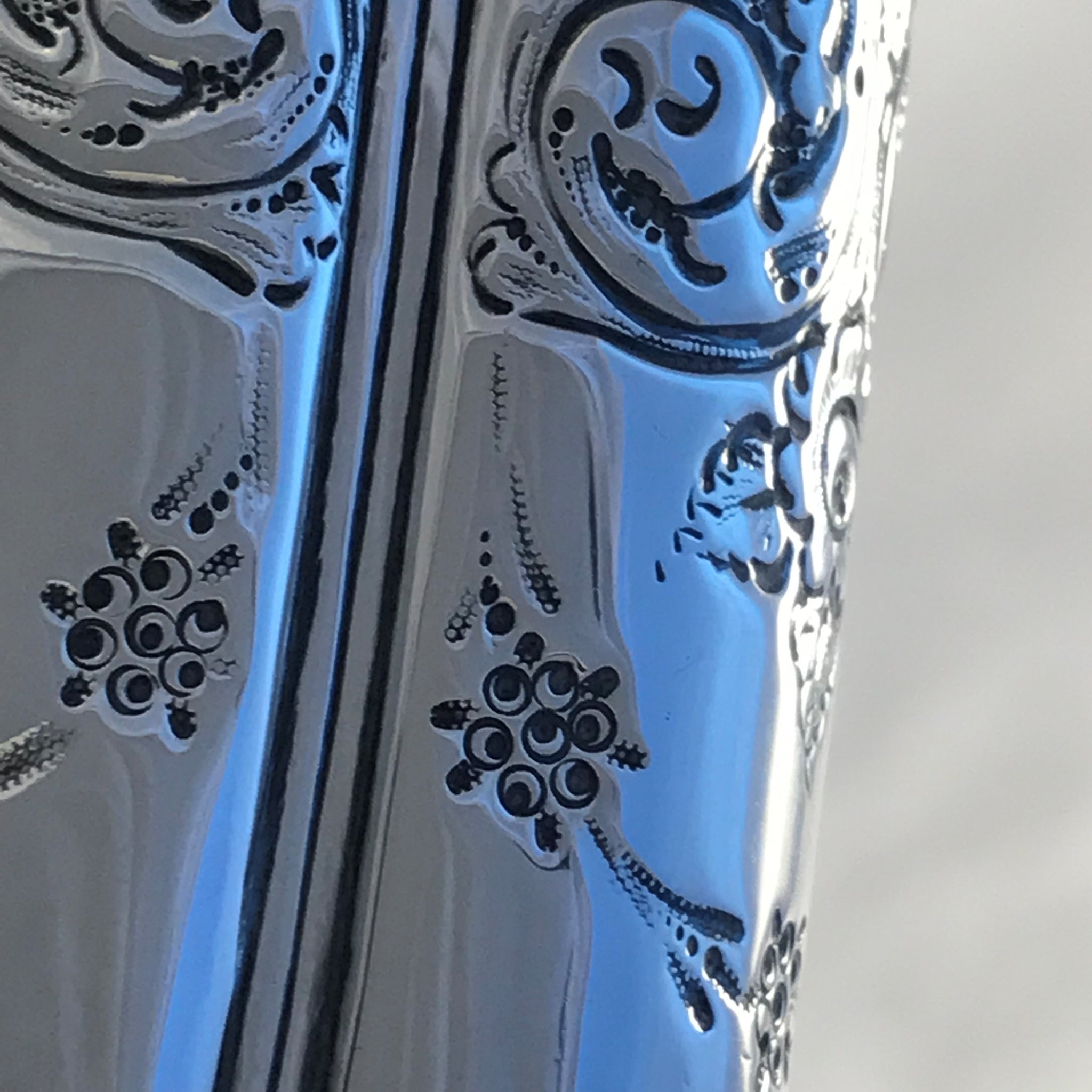 A really pretty Victorian silver Tea Caddy. This is a great quality piece of Victorian silver. It is quatrefoil in shape and decorated with an embossed decoration. The lid slides onto the base and is a good fit. A beautiful small silver Tea Caddy.