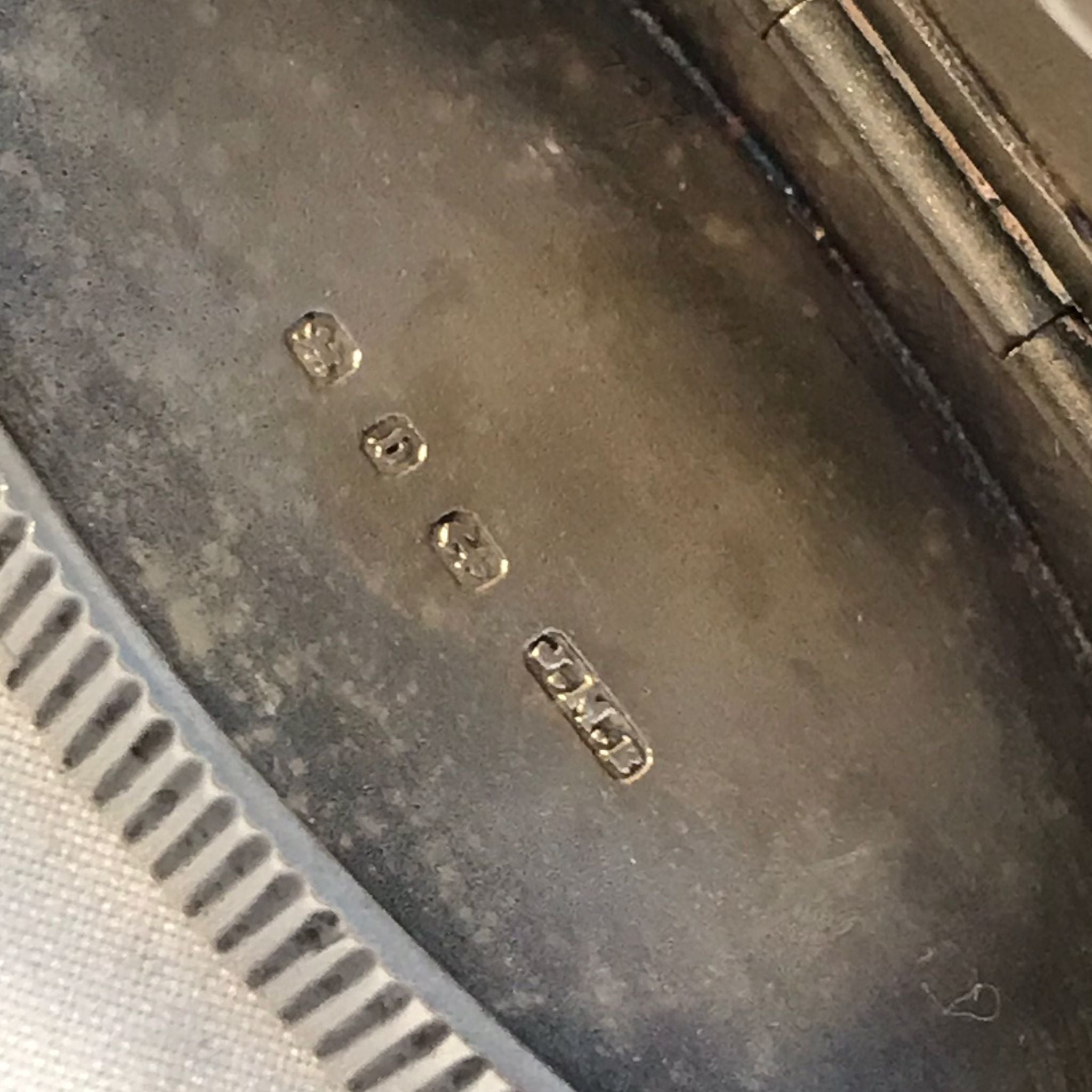 This is in good condition with some minor dents on the base. The hallmarks are clear and legible, The striker has no damage and overall the box has surfaces marks and light scratches commensurate with age and use.